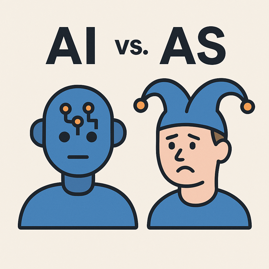 Dacă AI-ul e sora mai mare, responsabilă, care citește, învață și vrea să fie perfectă, atunci AS-ul e sora mai mică, care încearcă să o imite, dar încă nu știe să-și lege șireturile.